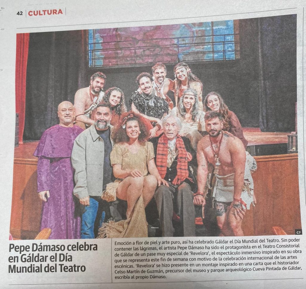 Noticias desde el Atelier de la Casa Tauro, La Isleta, Las Palmas de Gran Canaria. Pepe Dámaso en Gáldar, Dia Internacional del Teatro, Prensa. 08.04.2026 por Agusanta Estoy muy contento pues la prensa se hace eco de la celebración ayer en el Teatro de Gáldar del día Internacional del Teatro.Me alegro por la cultura de los pueblos y por todo el equipo que con el Ayuntamiento lo han hecho posible.Buenas noches.