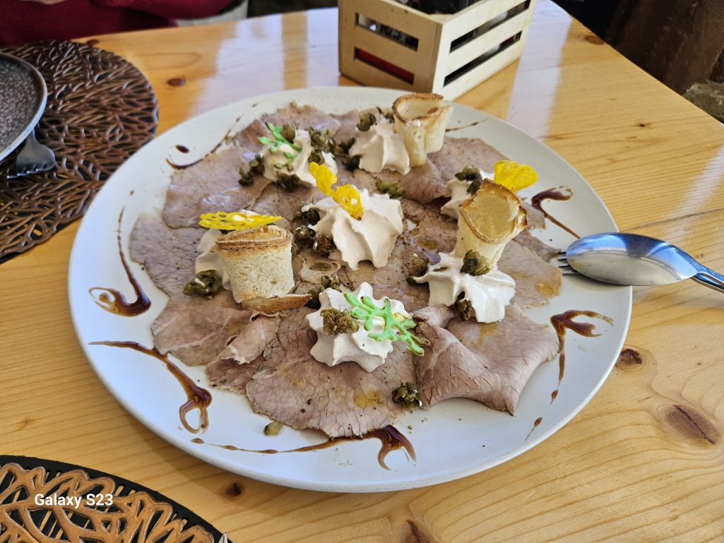 Vitello Tonnato. La salsa de atún muy cremosa, plato muy bien terminado.