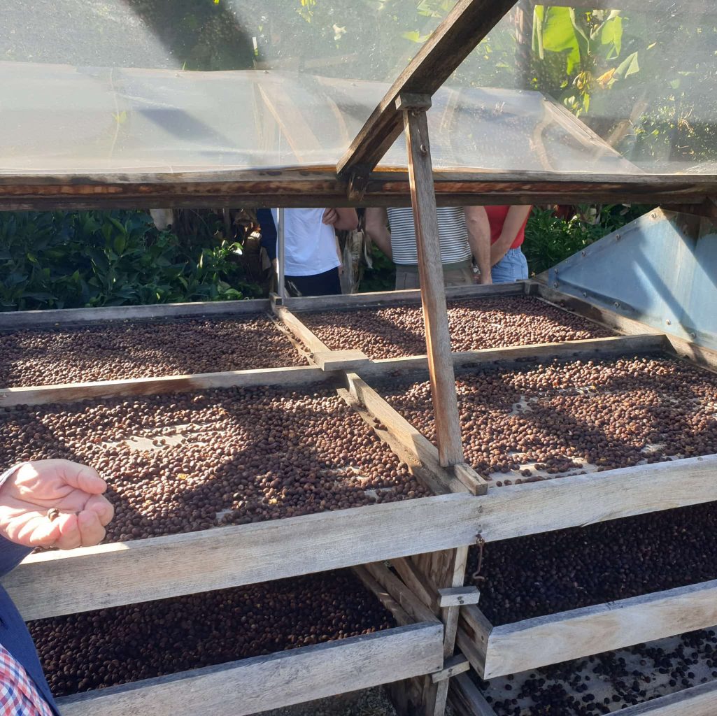 El siguiente paso fue dirgirnos al Valle de Agaete para llegar a la Finca los Berrazales y disfrutar del paseo por la producción del café y la bodega de vino. Nuestro querido amigo Rudi tenía el objetivo de probar el café por primera vez en su vida. El resultado lo podrán ver en un video más abajo. Después de la cata del café compramos para llevar algo de café y de vino y seguimos hasta la gasolinera Shell, en Agaete, para comprar las fantásticas Naranjas del Valle de Agaete.